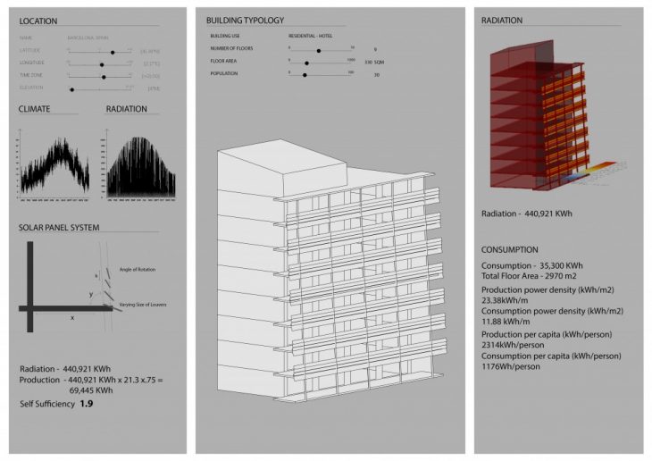 The studio explored how the facades of existing buildings could be retrofitted with solar panels to make them more efficient.