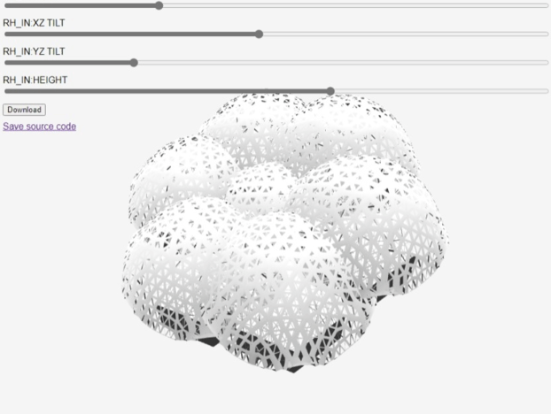 We decided to divide the design of the farm into three parts – outer shell, inner shell and interior. As a result, each of us was responsible for one part and I looked after the interior part. During the Digital Tools for Cloud-based Data Management course, we learnt to work with data and geometry in interactive web applications. Then, I tried to build an interactive 3D-model and make it available online. At that time, the team was facing the challenge to build on a steep slope. The team must coordinate to fit the three parts together. Therefore, I built a sketch model for myself and intended to use it during our quick online discussions.