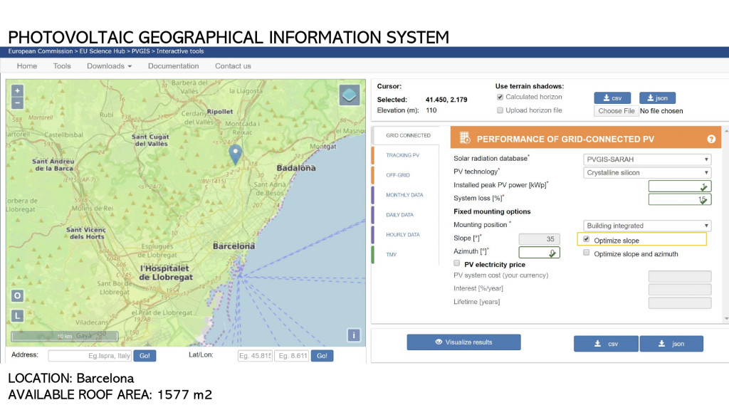 For our Metabolic Systems: Energy module, one of our main considerations was the energy consumption within our project. We considered ours of function and the types of machines that were working. Including administration aspects. Also, our main advantage here is the location, Barcelona is quite sunny all year round with a few cloudy days. Especially in summer, it has long daylight hours.