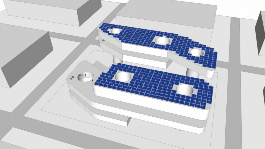 We calculate our available roof area in order to have an approximation on the number of panels that we needed, as well as specified the location to know the slope in which each panel is going to be so that it can take as much advantage of solar radiation.