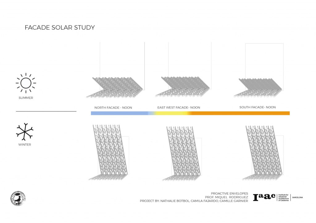 During the proactive envelopes module, we considered the previous courses on ecosystemic structures, energy, and thermodynamics. Our inspiration comes from the structural idea of nature, and we looked into the veins of a leaf as an inspiration for our facade.