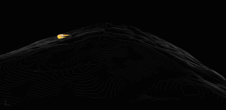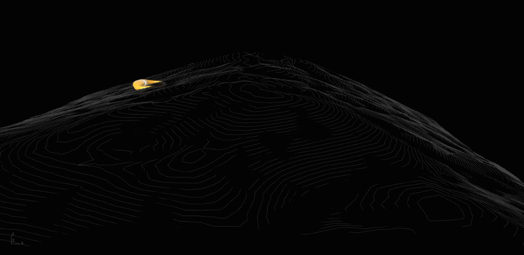 This GIF shows how the building interactively morphs into different shapes when the location of the building changes on the terrain.