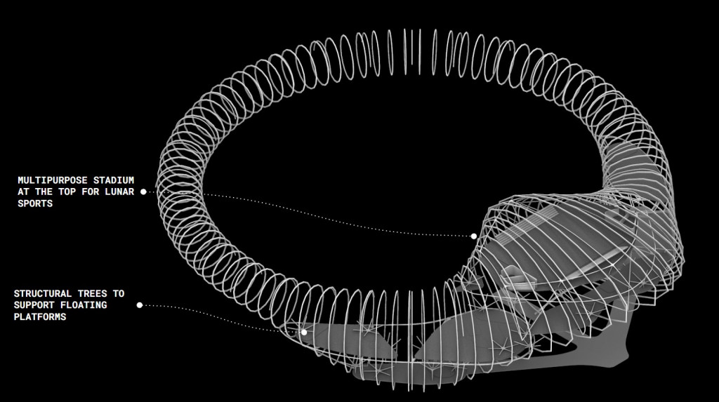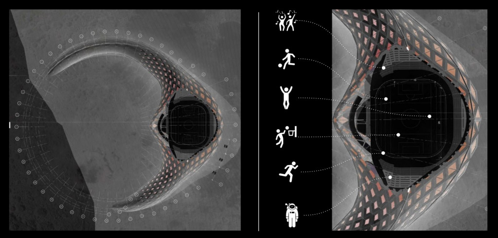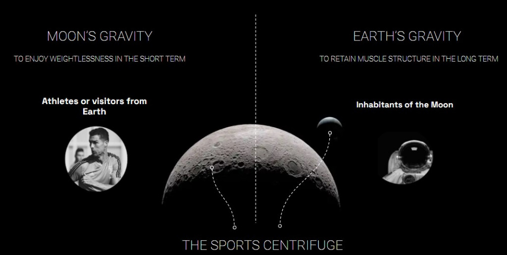 The design idea of the sports centrifuge is to cater to both the permanent residents on the moon as well as the space tourists by harnessing the possibilities of weightlessness on the moon and also to generate earth’s gravity to retain the muscle structure and integrity of the human body.