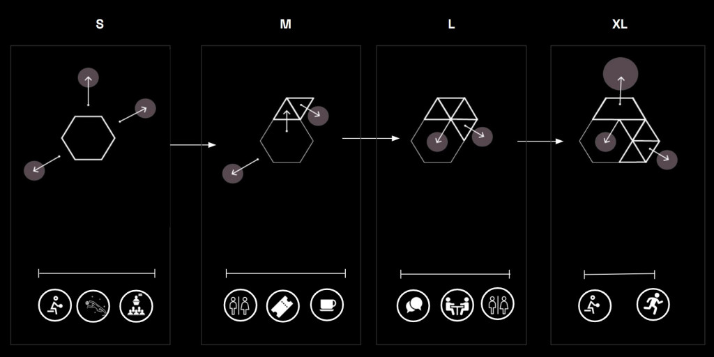 The modules on the interior are divided into 4 types based on the needs of each programmatic requirement and the base module of each unit is as shown below.