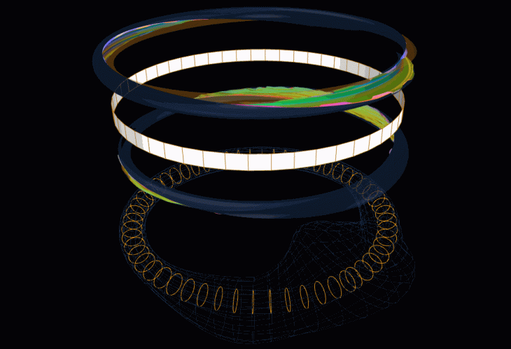 The torus was modeled with Perlin noise so that the surface gets undulations which can be used as a rock climbing wall on the inside of the torus.