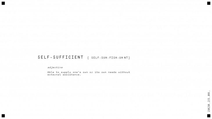 Self sufficiency is the ability to supply your own needs without external assistance. It can be measured by the amount of greenhouse emissions.