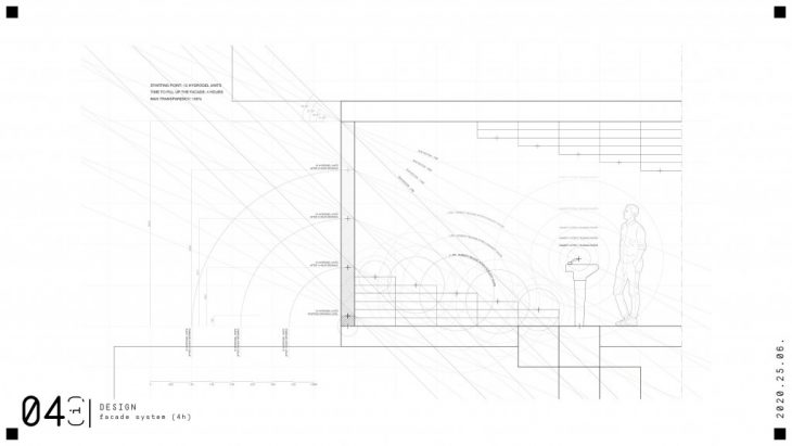 The hydrogel is placed within the circulation’s structure and on the facades to maintain the loop, since it’s triggered by both internal and external values.