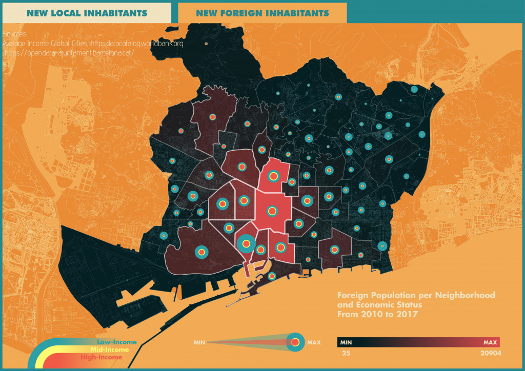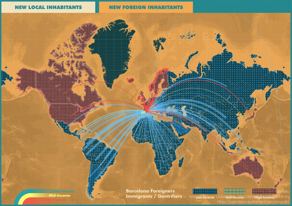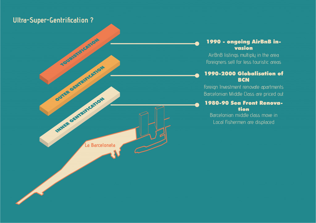 An excellent example of this happening is Barcelona itself. The local citizens which consisted of fishermen and port workers started being displaced by the Barcelonian middle class in the late 80s and 90s. They came from less central, less diverse areas of the city and created a significant difference in the economic status of the city due to their higher incomes. But in the 2000s, Barcelona evolved to be one of the major global cities. Young foreigners with university studies were looking for the diversity of a central dense neighbourhood while being next to the beach. That led to the displacement of the previous gentrifiers.