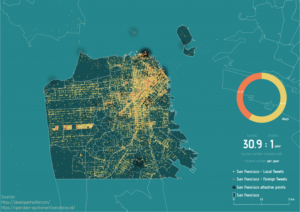 - A change from a static categorisation of areas to a dynamic one is proposed, that can change through time or through the current occupation of tourists in the city.