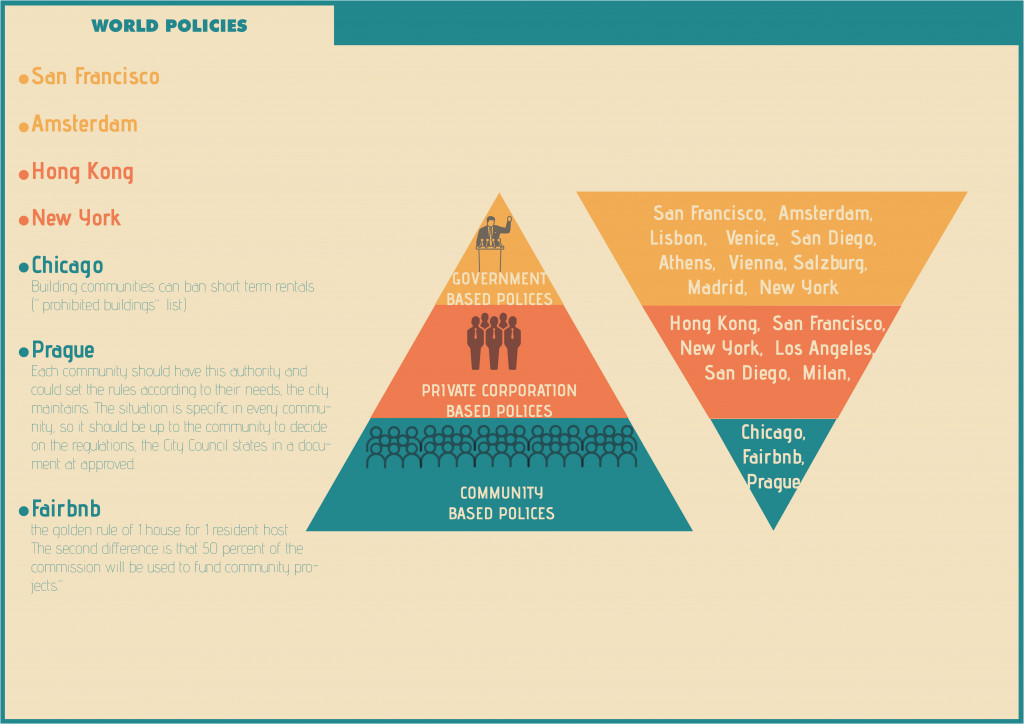 These are usually top down policies that involve around declining permits to global brands and excessive touristic apartments that exaggerated the problem.It also involves promoting awareness to the tourists about the repercussion of their actions.