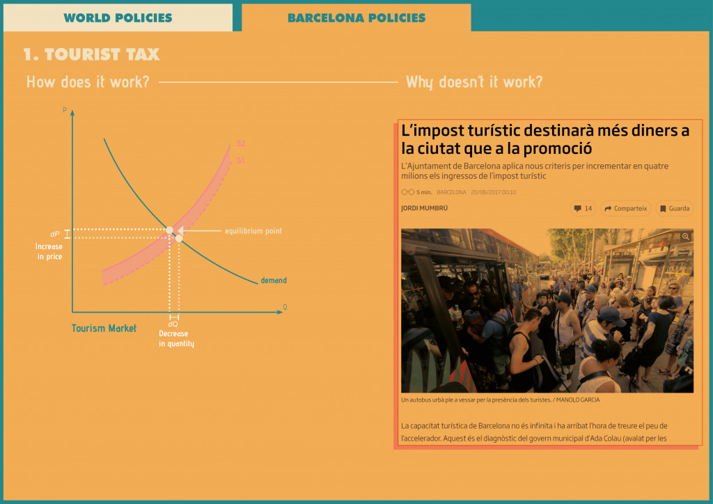 The first one was the tourist tax. It is a direct tax on tourists based on the number of nights they are spending in the city and their economic level – only based on the hotel category that they book . They currently only tackle the visitors who are staying in hotels, as they are the ones collecting the tax. This is aimed at de-incentivise tourism, while compensating its externalities.