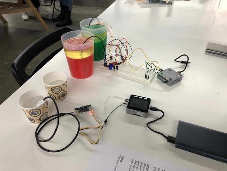 TDS (Total Dissolved Solid’s) sensor measures the conductivity of the dissolved solids such as salt and minerals in the solution. This helps us in finding the purity of the water. The sensor consists of a pin head that goes inside the water, the pin head reads the information in the form of voltage. Through the Arduino code, this voltage is converted into TDS value (the scale ranges from 0 to 500, where values till 350 is good water and more than that is contaminated water). The TDS value later triggers one of the motors that are fitted inside two lava lamps- red and green. The installation shows us that by using coding, we can use domestic objects to visualize different type of data.