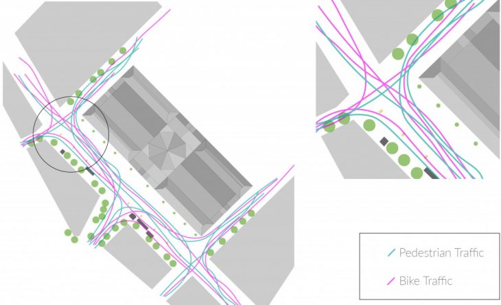 The final project is located in Plaza Commercial, one of the main plazas in El Born district in Barcelona. After a series of on-site and digital data collection processes, the participants were able to make data visualization maps for sun/shadow, circulation paths and use of land, overlap them, and locate the areas of opportunity. The proposal´s aim is to tackle the three main issues that the plaza faces, lack of seating areas, shadow and vegetation. The final design manages to cover a broad surface area, while not disrupting the circulation of pedestrians and bikers and providing shadow to the terraces of the restaurants of the plaza. It is composed by double- curved minimal surface modules that are joined together with 3D printed elements.