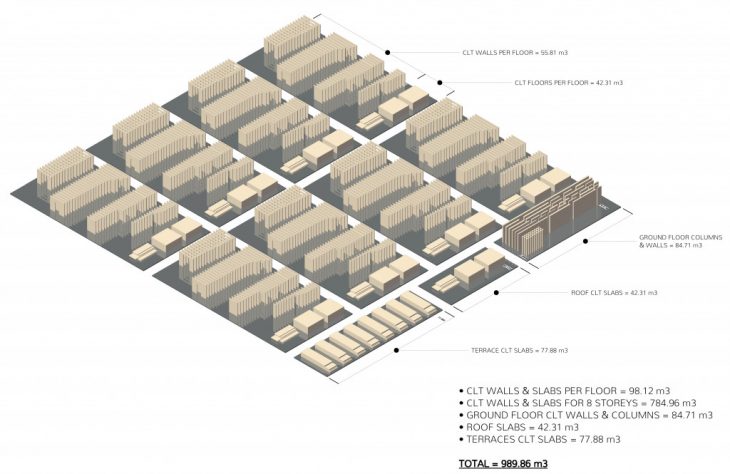• CLT WALLS & SLABS FOR 8 STOREYS = 784.96 m3