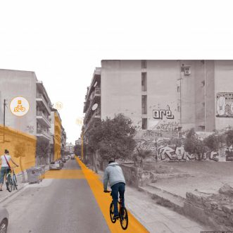 TerrATHa aims to reactivate unused abandoned buildings or buildings with no current use, to enhance the terraces of the city and to promote bicycle use.The concept is to re-appropriate the terraces of abandoned buildings into a n open public space and to create a bike lanes network between these new attraction points and the new active district of Athens near the sea.