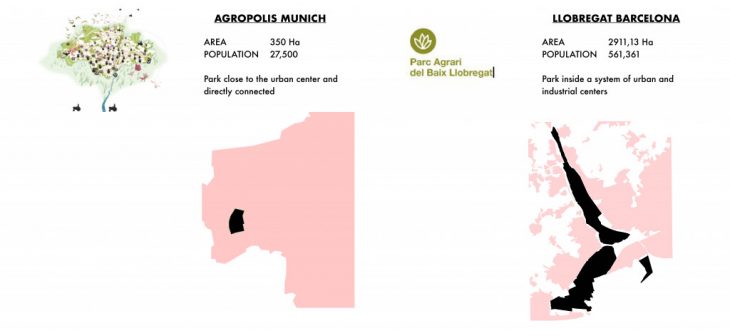 Comparing the Agro-park Baix Llobregat with the Agropolis Munich project, it is possible to notice similarities in density and location regards to the city center.