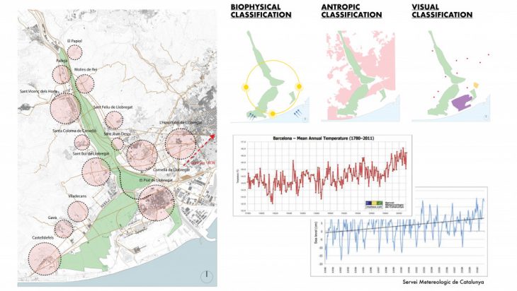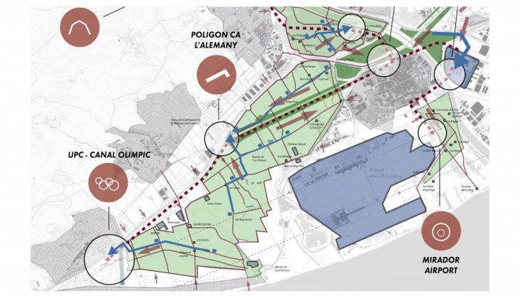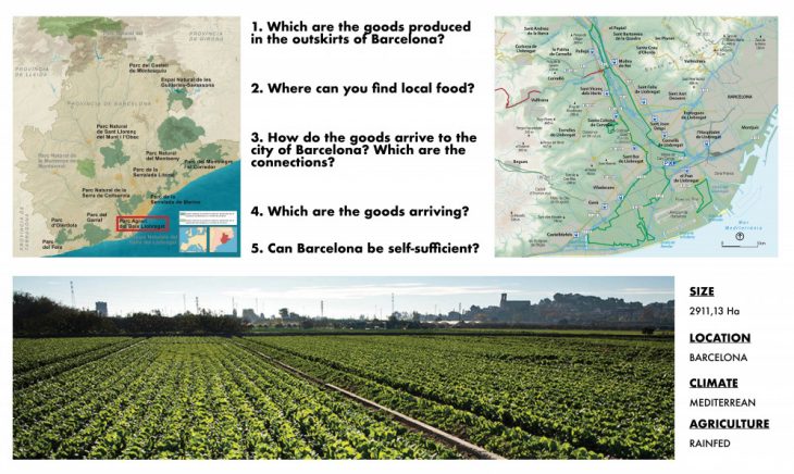 The park is surrounded by a very dense urban pattern and close to the airport and the Zona Franca of Barcelona where a big amount of the food produced is transported. Moreover, the park is close to the delta of the river Llobregat and the sea and has high speed winds coming from South-East and South West.