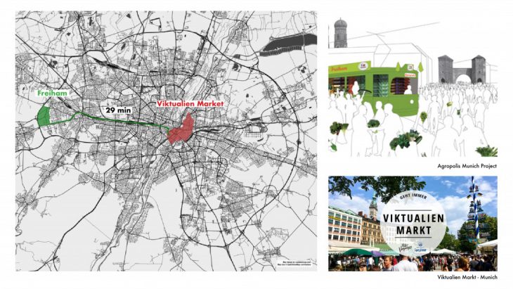 One important element to consider in the analysis of the Munich project is the tram connection between the neighborhood of Freiham and the Viktualien Market in the city center. This tram line foresees the transport of fresh food and different stations with fresh food markets. This allows more consciousness of the citizens about food production and harvesting. Moreover, it foresees a more sustainable way of food transportation.