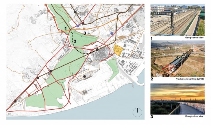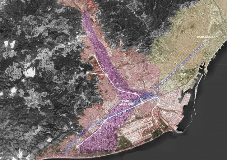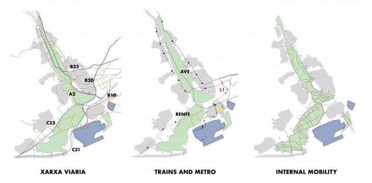 Starting from the comparison between the Agropolis Project and the agro-ark Baix Llobregat, it is evident that the agro-park is a space that citizens always pass by but that never see and appreciate. In these maps it is possible to visualize the big impact of the infrastructures in the surroundings of the agro-park. Highways and railways are creating boundaries and sometimes also divide the park, creating obstacles for slow internal mobility and bio-corridors.