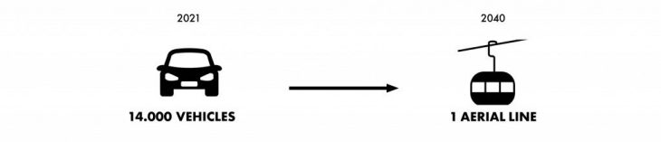 The new electric aerial cabin lift system takes inspiration especially by the Aerial tramway of Caracas and the Metrocable Project of Medellin which showed successful results as a mean of public transport.