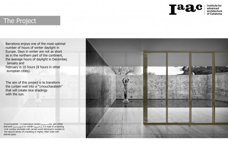The aim of this project is to transform the curtain wall into a “1moucharabieh” that will create nice shadings with the sun.