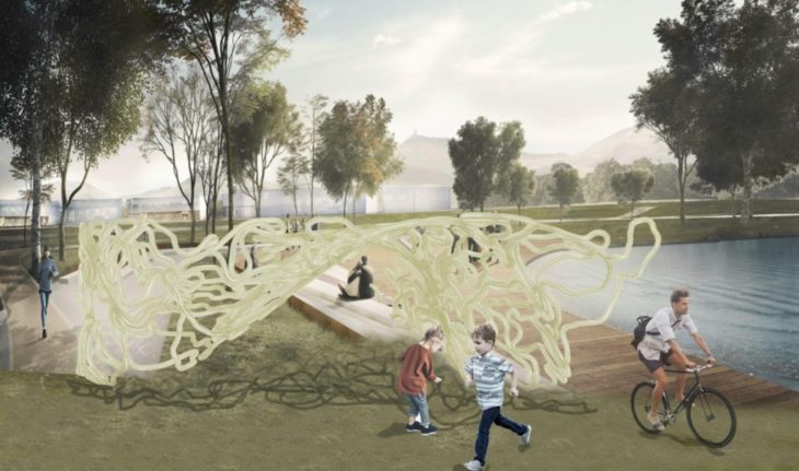The aim of the project was to create a pavilion inspired by the math behind pasta. As it is placed in the Viennese Prater, it should provide a shelter against strong winds and create a climbing structure for children.