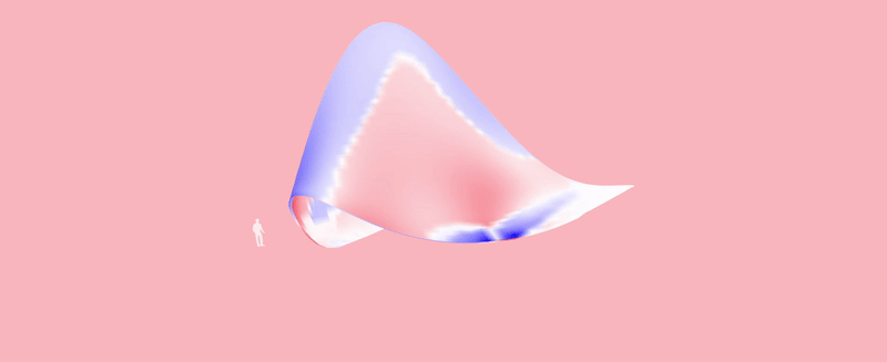 displacement values are still low given the 20 m x 7 m span of the pavilion. max. displacement = 2.88 cm