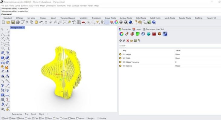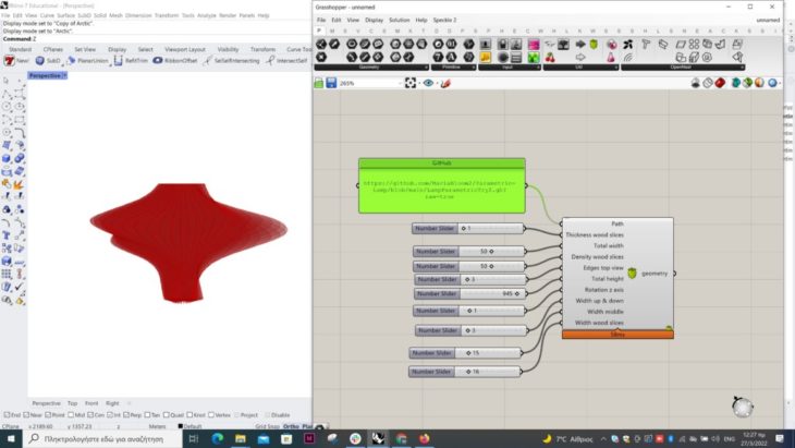 For future development of the application, it will be desired the use of OpenNest (a free open-source digital fabrication plug-in). This plug-in will enable the user (after setting his desired size and shape) to directly get the slices of the lamp projected on a horizontal surface. This horizontal surface will have the exact size needed for a CNC or a laser cutter. In this way the lamp will get from the design phase directly to fabrication.