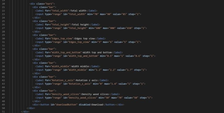 The-Wavy-Lamp is an interactive web-based application, which enables the user to change the values of different sliders in order to select his desired size and shape of a wooden lamp. The user can change the values of following sliders: