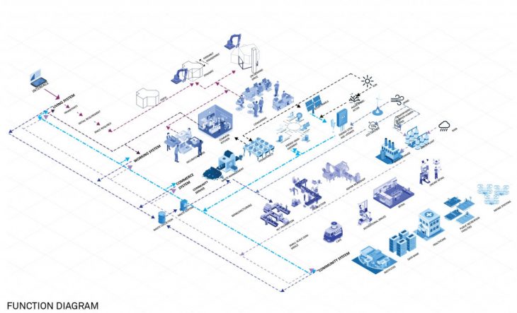 Dharavi has become a progressive community, Artificial Intelligence and Internet of Things has lead the path to develop our community using our own existing rules improving the quality of life. Growth happens through the interface of the community where we input our needs which follows a self-organizing AI generated Pattern System based on Dharavi’s initial one, mixing intricate layers of living, commerce, industries, religious spaces and institutions that were connected together in various networks making Dharavi a self sufficient community.