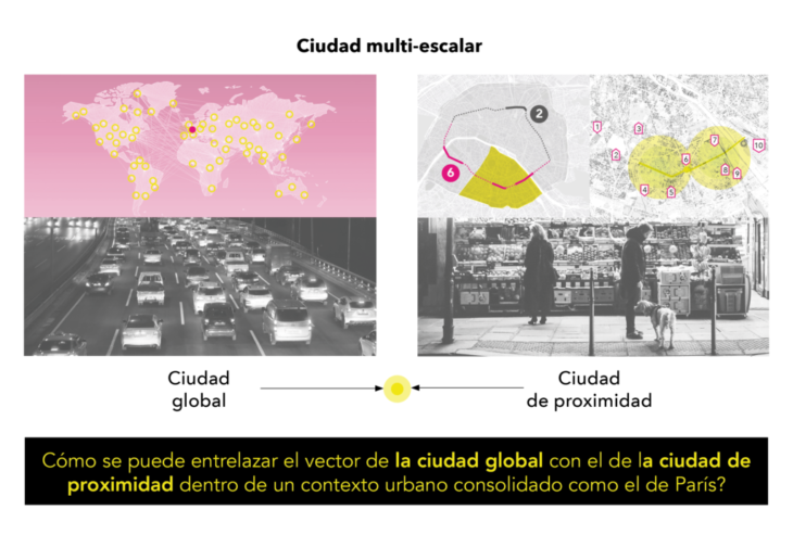 En las últimas décadas, como consecuencia del proceso de globalización y digitalización de la economía, las grandes ciudades se han estructurado según una relación muy marcada entre una dimensión macro y otra micro urbana. Junto al concepto de ciudad global conectada y abierta al mundo, pero también frenética y contaminante, persiste una dimensión más íntima, más lenta, aunque más conservadora. En París (ciudad global Alpha+) el desarrollo urbano de Métropole du Grand Paris y la teoría de la ciudad de los 15 minutos se mueven en estas dos direcciones, proponiendo nuevos modelos para superar las problemáticas e intentando encontrar puntos de convergencia y contacto. ¿Cómo se puede entrelazar el vector de la ciudad global con el de la ciudad de proximidad dentro de un contexto urbano consolidado como el de París?