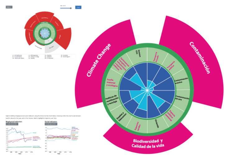 Apoyándonos en las teorías económicas de la Doughnut Economic desarrolladas por Kate Raworth, a partir de la dona de Francia se identifica una dona de referencia para el contexto urbano en cuestión.