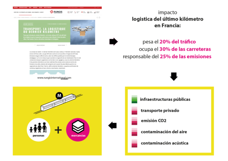 Frente a estos números, la existencia de una infraestructura de movilidad pública capilar y funcional en ferrocarril como la de París, ha sugerido la hipótesis de utilizar la red de metro no solo para el transporte de personas, sino también para el movimiento y distribución de mercancías.