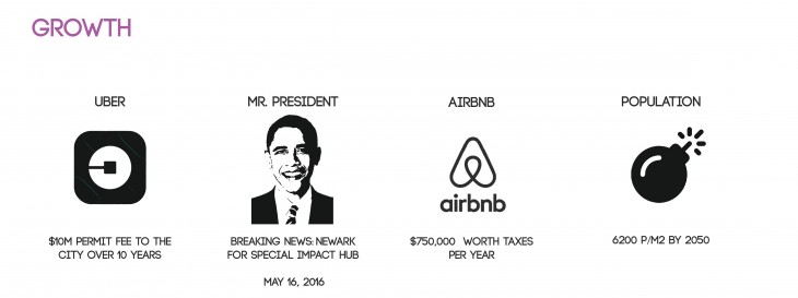 Mobility was the case study we did throughout the preliminary research phase; urban mobility in Newark. What can collapse in an urban environment as a cause of urban mobility? How can the mobility system in the city collapse? How is data affecting how cities are evolving? How is technology shifting the paradigm in the world of cars, roads, networked systems…? What is the influence of new sharing platforms on traffic in the city? and finally; How would the future look like?
