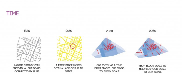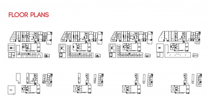 This is the story of a block that was a collection of introverted vacant buildings, tweaked to become a super-block, an organism that is a center in the city, where public life and circulation takes place on different levels.