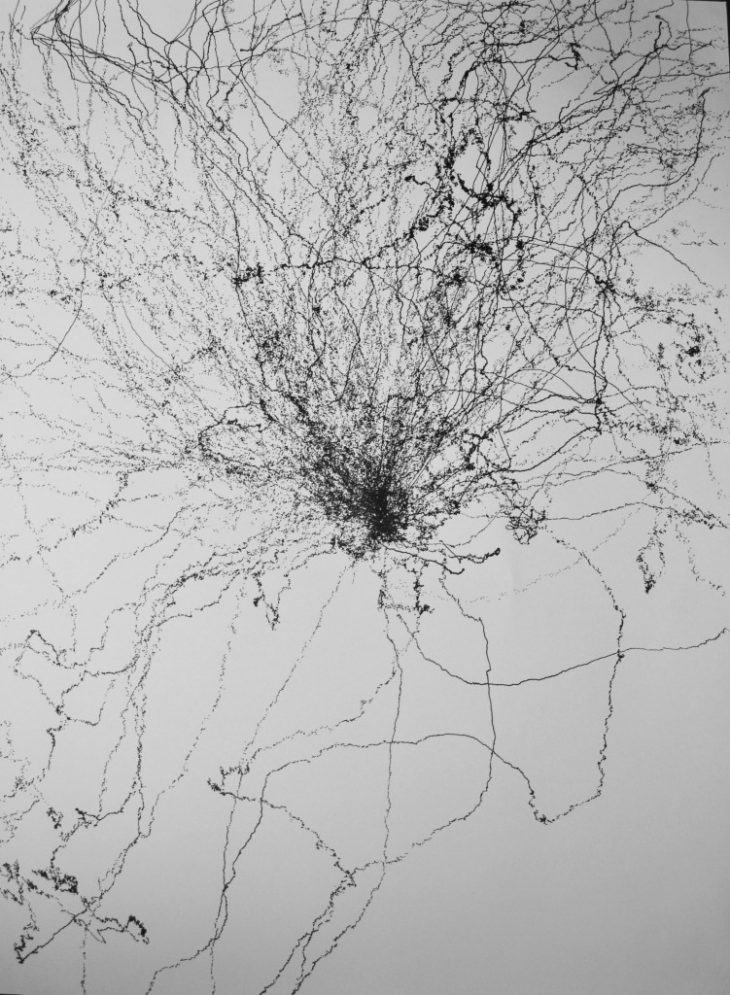 “The Zap-Zooper” is a drawing machine that uses sound waves to draw and creates different line types through different frequencies. This machine is a tool for mapping based on the attractor and repellent points in public space.
