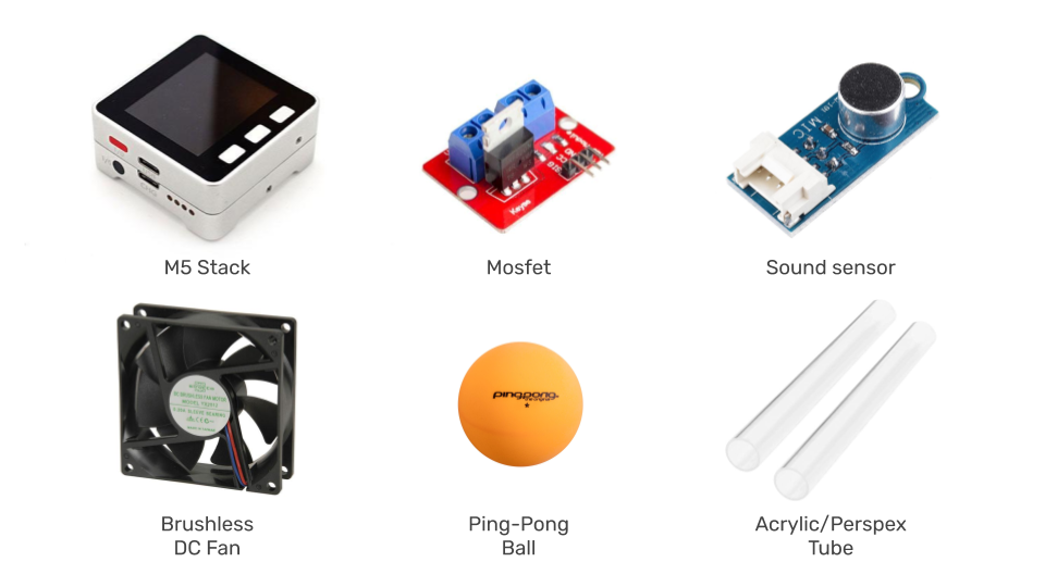 The items required to make the hardware for this project are as follow; Two M5 stacks, 1 Sound sensor, 1 Mosfet, 1 DC Brushless Fan, am Acrylic/Perspex Tube, Ping-pong ball, and a fabricated stand to combine the fan and tube. Data received from each sensor was categorized for 3 different ranges (from max to min) and converted to 3 duty cycles (PMW signal) respectively. Therefore, highest values lead to highest duty cycle and consequently to the highest speed of fan rotation. The fastest rotation of the fan resulting in increased elevation of the ball to float higher.