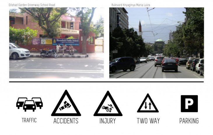 The topic we chose as a group was high traffic streets and for the same 2 streets – Delhi and Bulgaria were compared. Both the streets had common issues with regard to traffic congestion and accidents whereas both had a different context and setting because of which the approach of design for both would be different for the same set of issues.