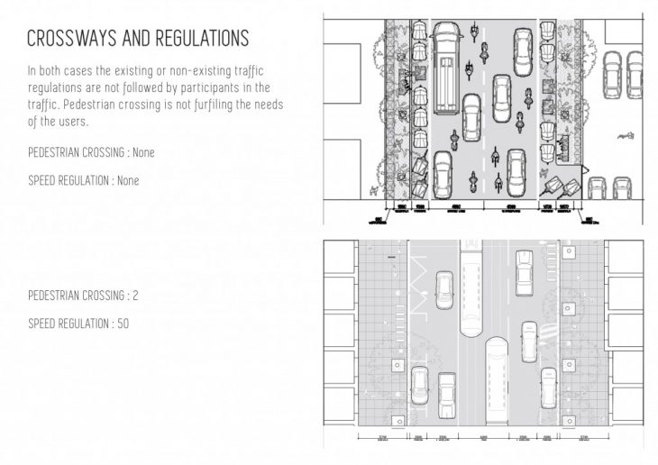 The Urbanization seminar focused on the analysis of urban change dynamics and the complex nature of cities around the world. For this, different types of streets in different cities where chosen and documented using predefined tools and templates.  We worked on two major topics during the discourse: urban fabrics and streets. During the process of analysis, various parameters were introduced using which the analyzed streets were designed for future advanced concepts.