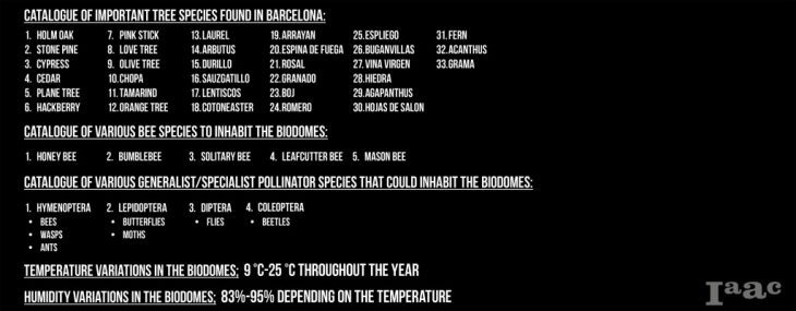 Important Trees/Bee Species/Other Pollinator Species/Temperature and Humidity variations in the Biodomes