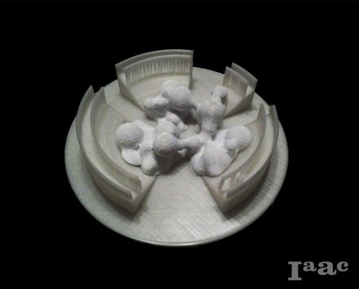 Since inside this organic growth of domes are housed plants and pollinators of all kinds it was necessary to create a variety of domes that correspond to the needs of these various plants and pollinators. Thus by devising a variety of grids that become dense if little amount of light is needed or less dense if more amount of light is needed, it was possible to respond to a large variety of conditions that define the future survival of the species that would inhabit the domes.