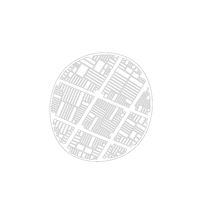 - Buildings in Venice are closely adjacent to each other with long alleys. To achieve this pattern, we subtracted the islands with “Parcels” from “Decoding Space” plugin and offset parcels for buildings.