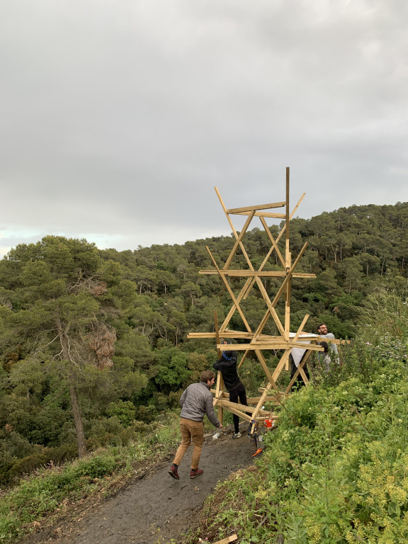 The aim of the seminar in this term was to produce the 1:1 vertical wooden structure located in Valldaura with containers to grow vine plants. The vine plant is commonly cultivated horizontally, and its material structure doesn’t permit it – alone – to sustain a vertical growth pattern. The plant therefore necessitates a support, a structure, an architecture.The seminar’s goal is the design and construction of a project for a non-human user. In the same way that architecture traditionally accommodates human bodies, and is therefore derived from it’s dimensions, movements… we will examine the vine plant: its anatomy, its needs, its metabolism, its life cycle, its capacity to produce grapes. In the attempt to cultivate it remotely, we will remove the roots from the ground, from its terrain, introducing a local control of the resources as a hydroponic system. And the analysis of the anatomy of the plant will let us design a structure that will accommodate it branches and its growth.