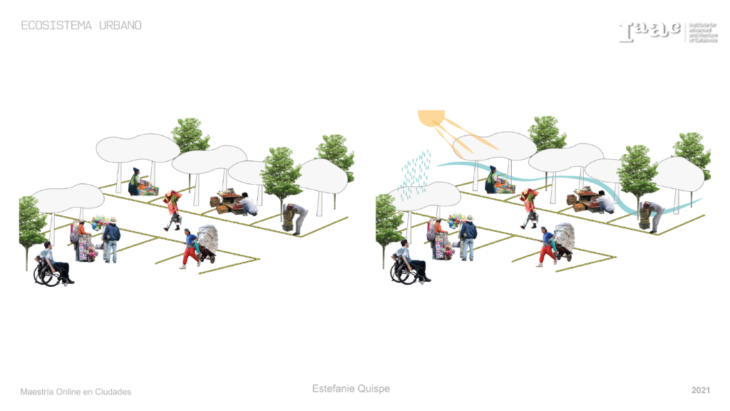 Es fundamental entender que elementos cotidianos como sombrillas, mototaxis, carretas, triciclos, carritos de supermercados o módulos ambulatorios pueden desempeñar un papel crucial como mobiliario urbano. Su practicidad para ser montados y desmontados, su bajo costo de mantenimiento y su capacidad de brindar protección contra las condiciones climáticas los convierten en una opción viable. Además, su ligereza permite una adecuada ventilación durante su uso. Estos elementos utilizados en el comercio ambulatorio ejemplifican cómo una simple sombrilla puede definir el espacio de venta y cómo dicho espacio puede desplazarse junto con el vendedor.