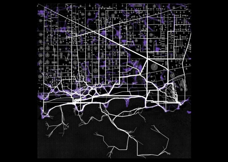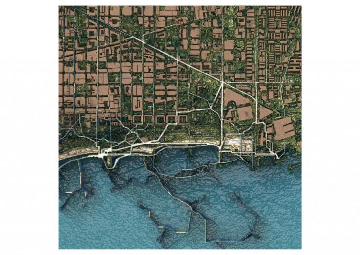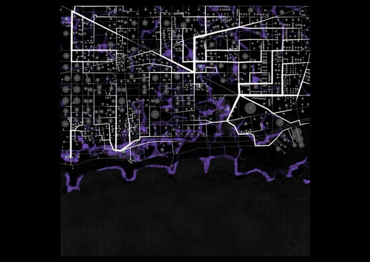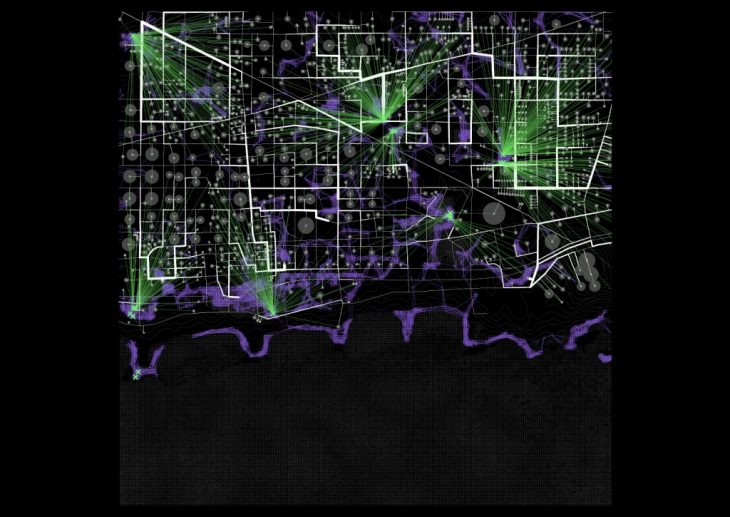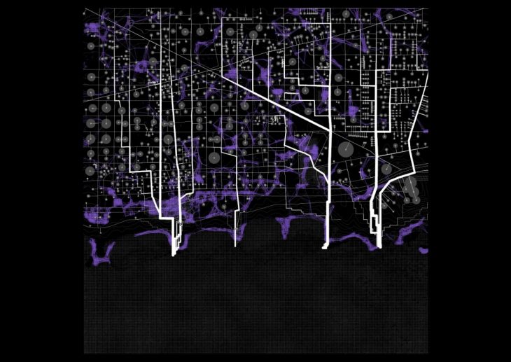 02_Building upon the first iteration, the network is able to be grown towards the ocean, crossing the physical threshold between the urban landscape and the ocean