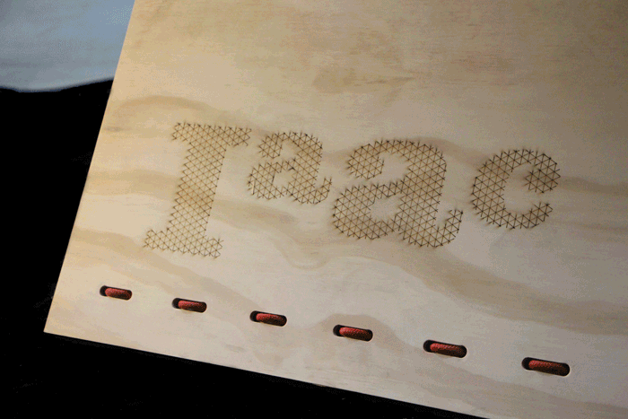 The prototype was produced on a scale of 1:3 with the laser cutter. I used this prototype to test the performance of the 3D printed fasteners and the appearance of the engraving. The conclusion of the prototype was to give the furniture more strength and to relieve the structural stress on the fasteners by closing the circle of forces. To achieve maximum stability I decided to tie the two wooden wings together with a rope.