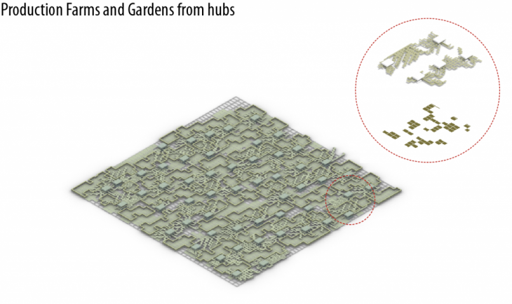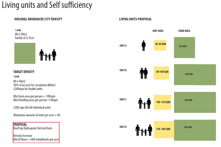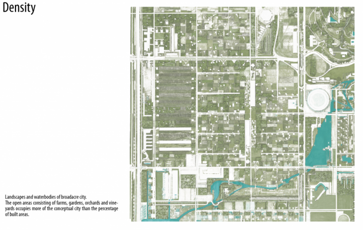 Reimagining broadacre city by projecting the idea of self sufficiency in terms of food production from the city to the future with the integration of new technology and increasing the density of the city.