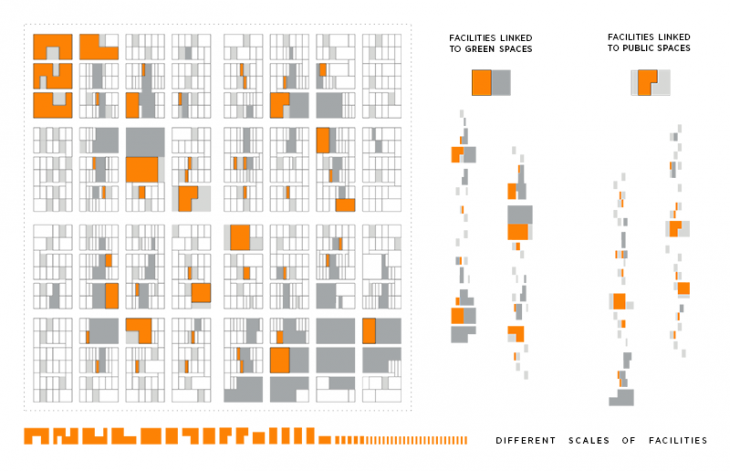 Facilities are distributed in the prototype following four different strategies, according to the four scales of facilities.