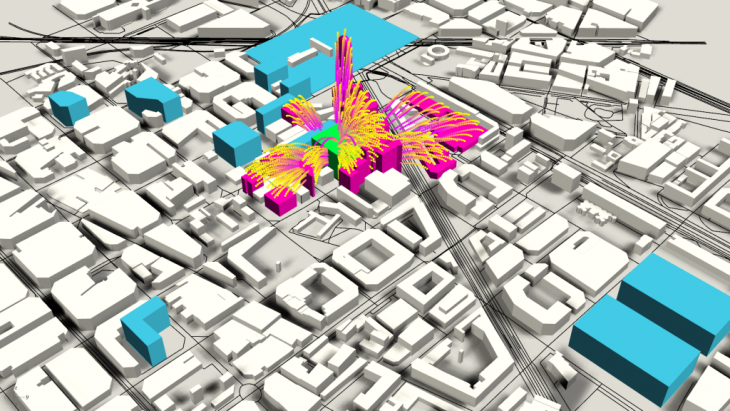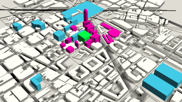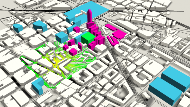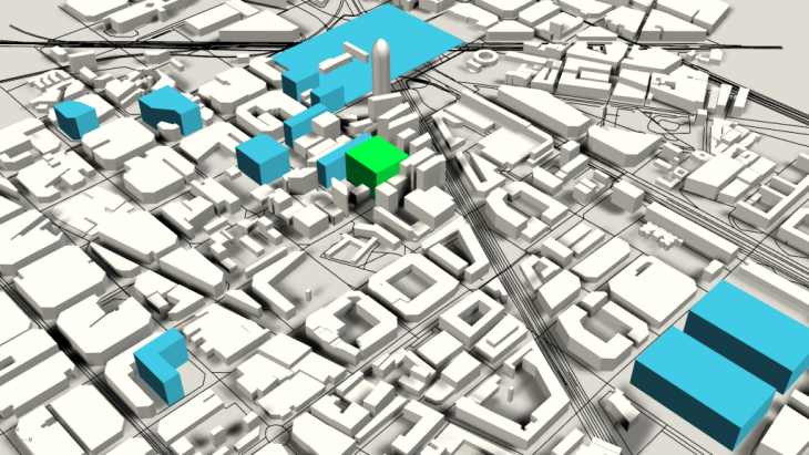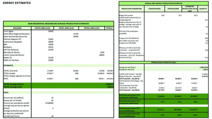 Mapping the surrounding buildings, 13 office buildings and hotels were identified within a 3 block radius. In turn a study was elaborated to estimate the daily sewage production of these buildings. It was calculated that only these 13 buildings produce an estimate of 1.28 million litres of sewage per day.
